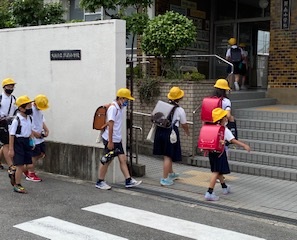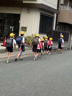 道路の端を1列でしゃべらずに歩いています。絶えず班長さんが、後ろを気にかけていました。