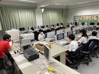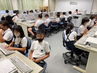 国語科の、「ローマ字の書き方」をパソコン教室で学習しています。子どもたちは興味深く取り組んでいましたが、慣れない子からは「せんせい」と助けを呼ぶ声も聞こえました。