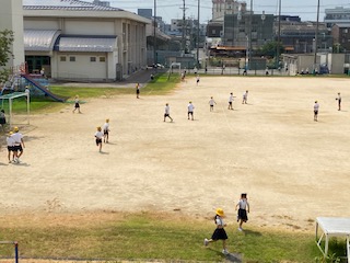 運動場に、子どもたちの元気な姿が戻りました。