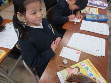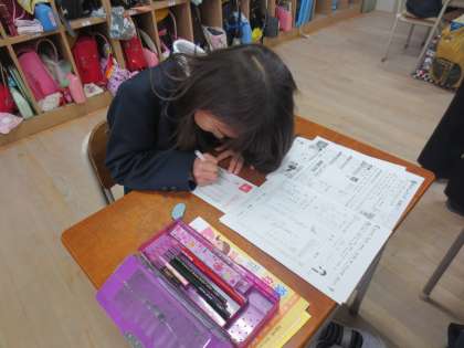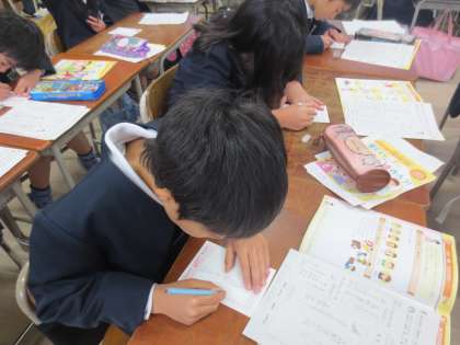 年賀状のあて名書きをしている子どもたちです。2年2組