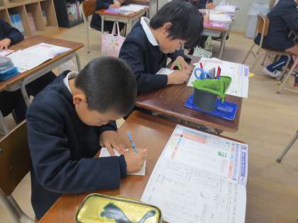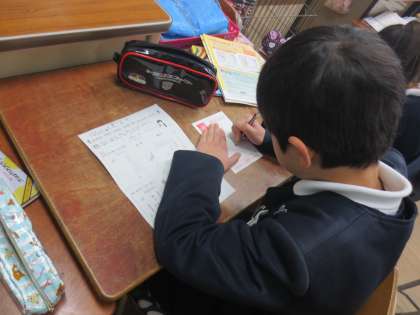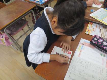 年賀状のあて名書きをしている子どもたちです。2年1組
