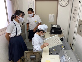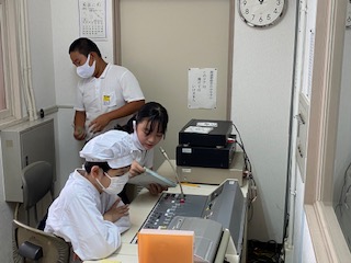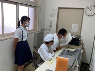 給食委員会の児童が頑張っています。今日の献立や給食クイズ、「黄・赤・緑」に分類されるその日の食べ物のはたらきについて、全校放送をしています。