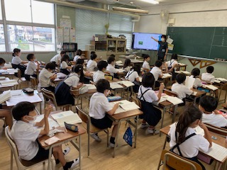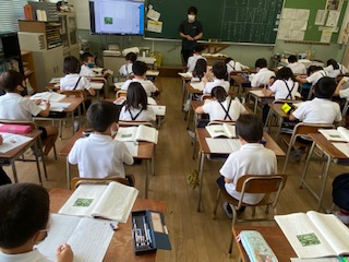 2組の国語科の授業です。「サツマイモの育て方」を学習しています。サツマイモのようすについて、どんなことがどんな順序で説明されているかを考えまとめていました。