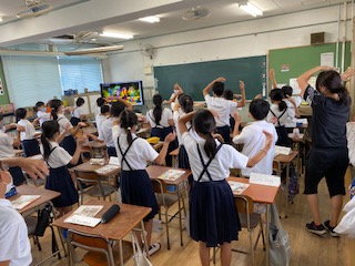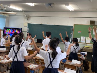 外国語(英語)科の授業は、C-NETのハレン先生と一緒に、英語の歌に親しみました。