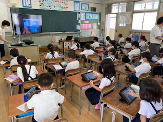自分で操作して、画面が変わると驚きと喜びの声があがりました。カメラ機能を使って写真も撮りました。子どもたちはすぐに慣れます。学習の幅も広がります。これからの学習はチャレンジすることがいっぱいで楽しみです。
