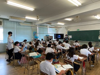 6年生の学習のようすです。新巽中学校の先生による2組の理科の授業です。