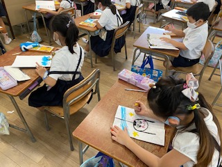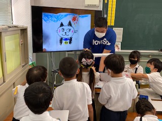 折ってドアに見立てた画用紙を開くと、ビックリ!子どもたちが工夫して描いた世界が……