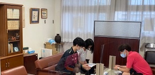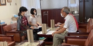 校長室で、心構えや今後の予定などを聞いています。