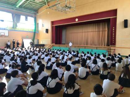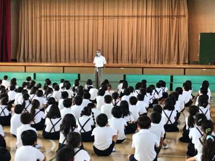 校長先生からは、 〈 この数か月間、「当たり前の日常」という言葉をよく耳にします。「当たり前」ってどういう意味ですか?どういうことなのでしょう?また、「当たり前」の反対は? 児童の皆さん、考えてみましょう。〉 と話がありました。