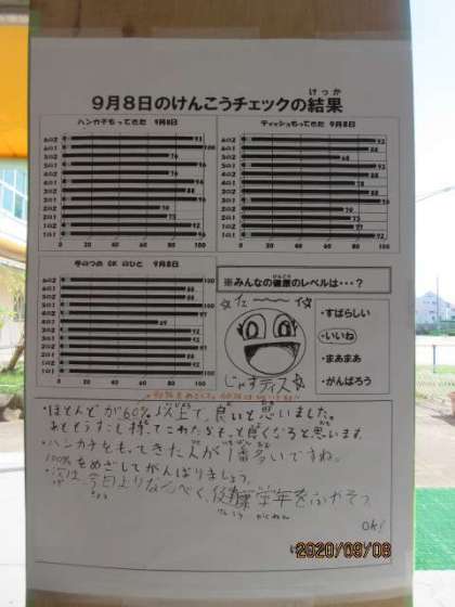 ハンカチ、ティッシュ忘れがまだまだ多いです。 ご家庭での協力をお願いします。