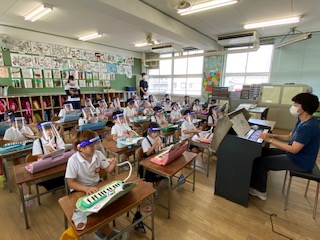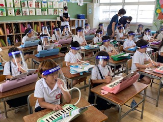 次に、ピアニカを吹いて音を出してみました。ドレミの場所、覚えられましたか。
