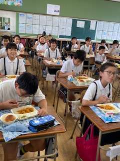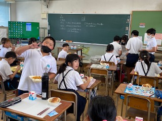 5年1組の給食時間のようすです。