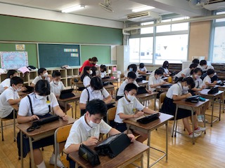 今日の7限目は、今年度はじめてのクラブ活動です。手洗いを徹底し、密集にならないよう工夫し、活動を開始しました。