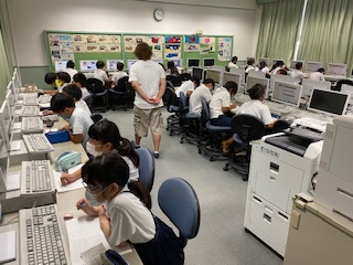 2組の社会科は、パソコン教室での調べ学習です。「受け継がれてきた祭りや行事」を学習しました。三大祭の中から天神祭について調べています。大阪を代表する祭りですが、今年は残念でしたね。
