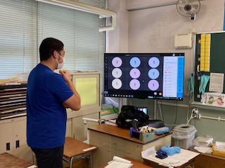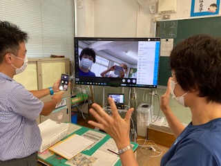 担任の先生が接続できたかを確認しています。「つながりました!」先生たちも喜んでいます。