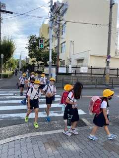 班長さんを先頭に、子どもたちが決められた通学路を登校してきました。