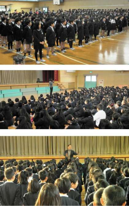 冬休みの生活についての注意の後、全員が元気に校歌を歌いました。