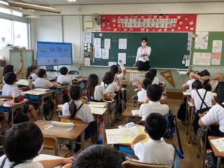 5限目に、4年1組で教育実習の先生が研究授業を行いました。