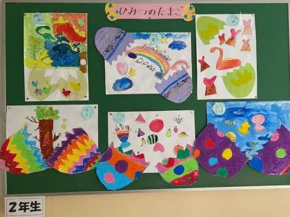 子どもたちの力作を紹介しますので、ご覧ください。廊下の掲示板と教室の背面に掲示しています。