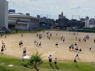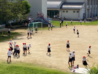 5日ぶりの運動場で、子どもたちが走り回っています。