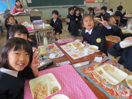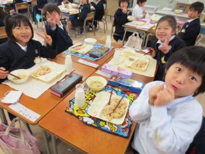 1年2組 給食の様子です。