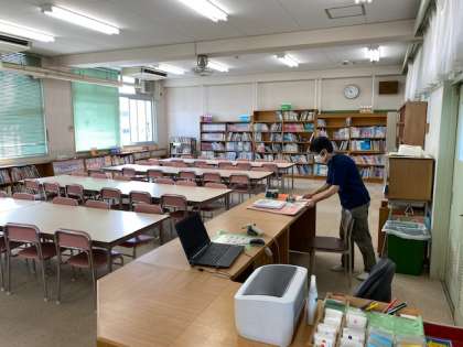 毎週木曜日に、図書館補助員さんが来られます。図書館のコーディネートや新刊本の紹介、本の管理等をしていただいています。各学級では、読書の時間に利用しています。