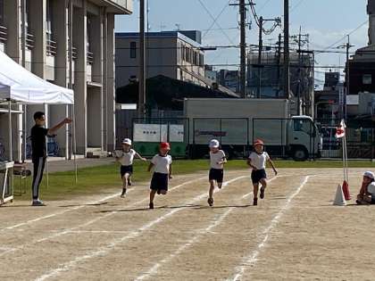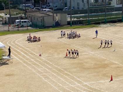 徒競走と団体競技の練習をしました。ハリケーンは、チームでよく協力しています。応援の歓声も聞こえてきました。