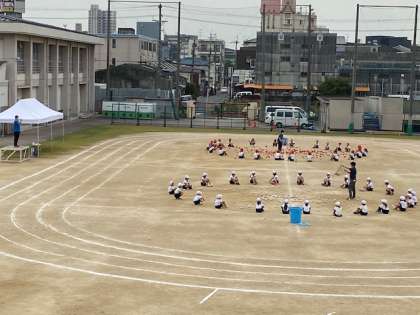 競技のあと、「たま」の数を先生と一緒に数えています。「たま」の片付けも子どもたちがしていました。