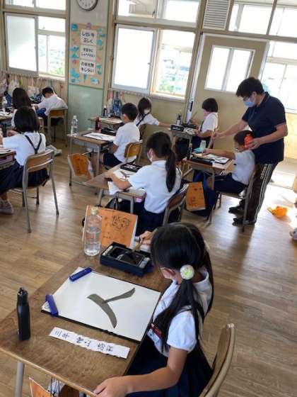 今日は「人」という字を書きました。簡単そうですが、筆づかいに注意が必要です。納得いく字が書けたでしょうか。
