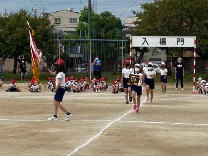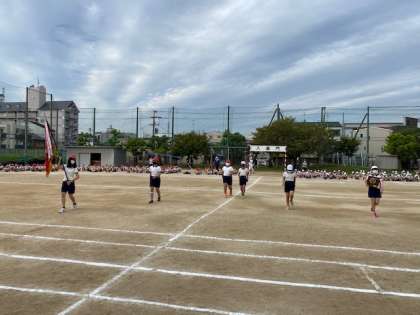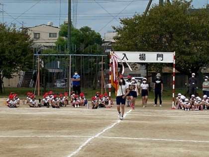 代表委員の子どもたちが入場してきました。委員以外の子どもたちは、自分の席で見学します。