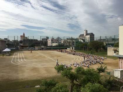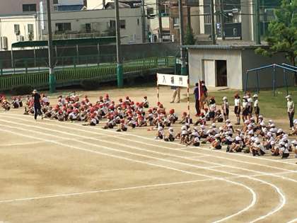 心地よい秋空の下、全体練習を行いました。今年は、児童席を広くとっています。