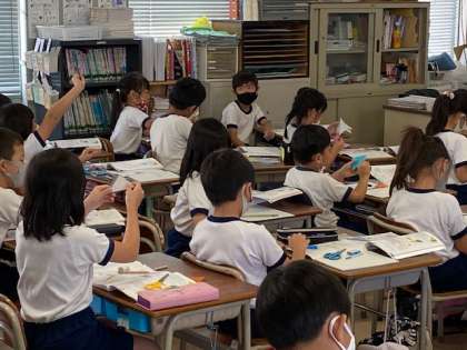 算数科で、「長方形と正方形」を学習しています。正方形とは、4つの角が直角で4つの辺の長さが同じ四角形であることを学びました。