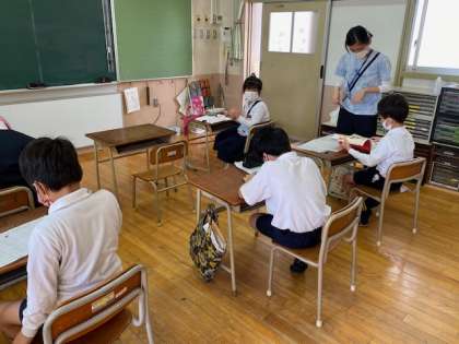 子どもたちが、算数の計算練習や国語の漢字練習などに取り組んでいます。