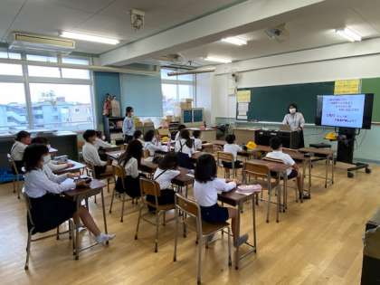 水曜日に、国際クラブの活動があります。子どもたちが、ソンセンニムの話を興味深く聞いています。クイズなどもして楽しみました。