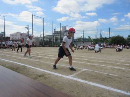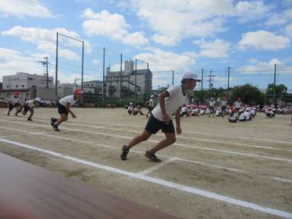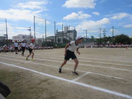4年生の徒競走、「よう跳んだ、ヨーイドンだ!」の様子です。