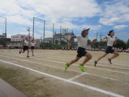 5年生の「徒競走」の様子です。みんな迫力満点のすばらしい走りをしていました。