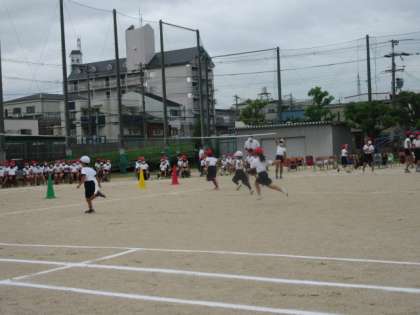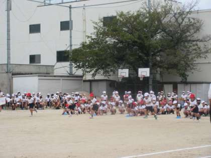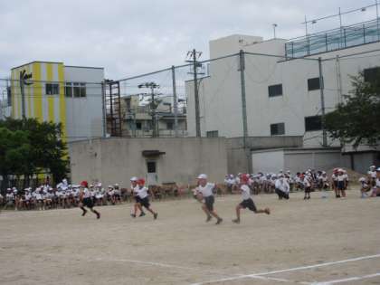 1年生の徒競走、「よ〜い!ドン!!」の様子です。みんなせいいっぱいがんばりました。