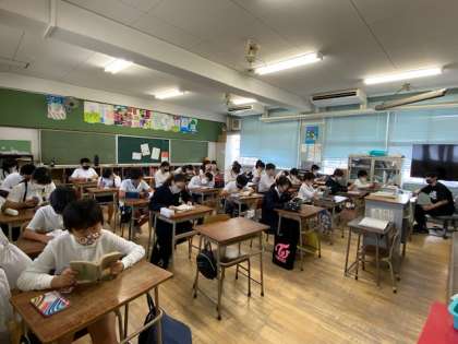 6年生の教室のようすです。話し声ひとつありません。集中して本を読んでいます。