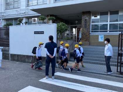 子どもたちの元気なあいさつの声、いつもの登校風景です。