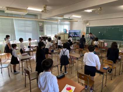 今日の学年集会は、「船長さんの命令です」をしました。各教室で、テレビから流れる集会委員会の子どもたちの言葉を聞き、子どもたちが動いていました。間違わずにできましたか。