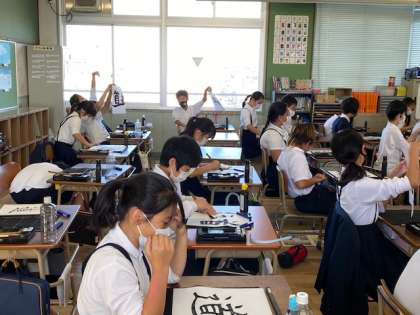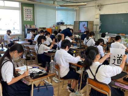 1組の書写の授業です。今日は、「道」を書きました。思うように筆づかいができましたか。