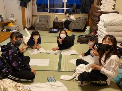 部屋で日記を書いたり、くつろいだりしている様子です。
