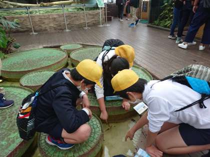 ドクターフィッシュの「ついばみ」を体感しています。くすぐったいようです。