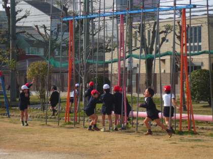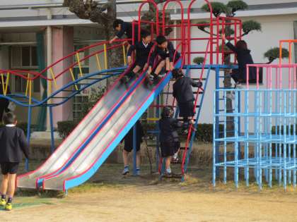 のぼり棒やジャングルジムでも、たくさんの子どもたちが元気に遊んでいました。