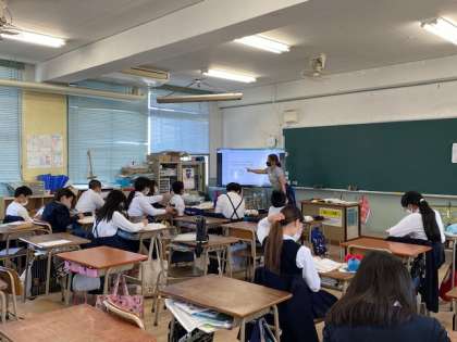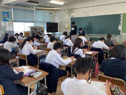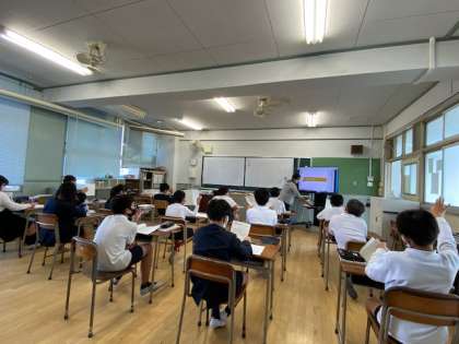 2組の社会科では、歴史プリントの答え合わせをしていました。