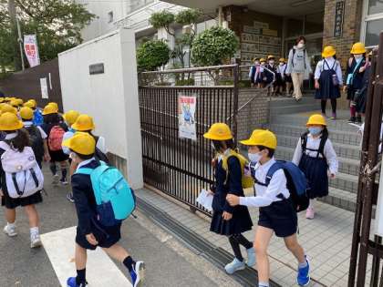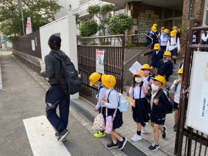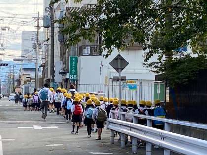 8時45分、2年生の子どもたちが先生に引率されて出発しました。