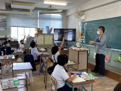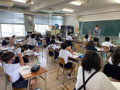 1組の社会科で、単元は「店で働くひとびとの仕事」です。今日は、コンビニエンスストアについて考え、知っていることを発表していました。