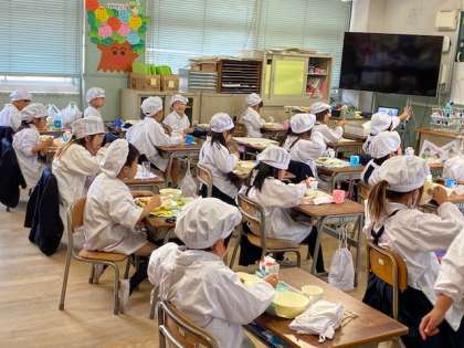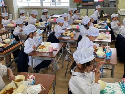 1年生の子どもたちが、美味しそうにタコライスを食べていました。