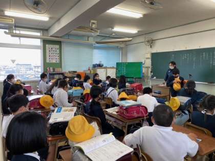 集合時間に遅れないようにしましょう。(5年生の終わりの会のようすです)