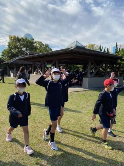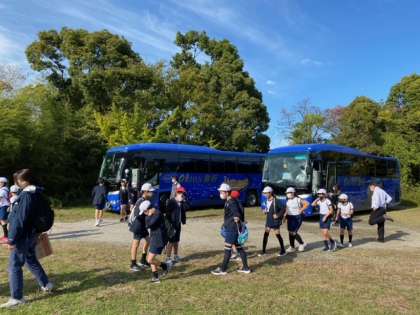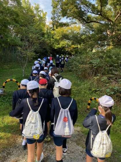 信太山野外活動センターに到着しました。活動場所へ向かっています。